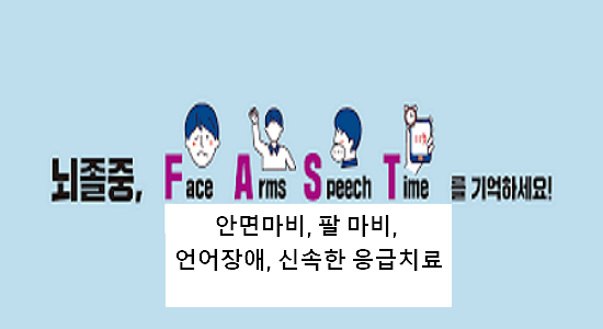 얼굴, 팔, 말 이 3개 말고도 시각장애(한쪽이 안 보임, 복시), 어지럼증(보행이 어려움), 갑작스러운 심한 두통 등 이런 증상 여러 개 있을 경우에 바로 병원에 가서 검사를 받아보시는 걸 진심으로 추천합니다. 후회하지 마시고요