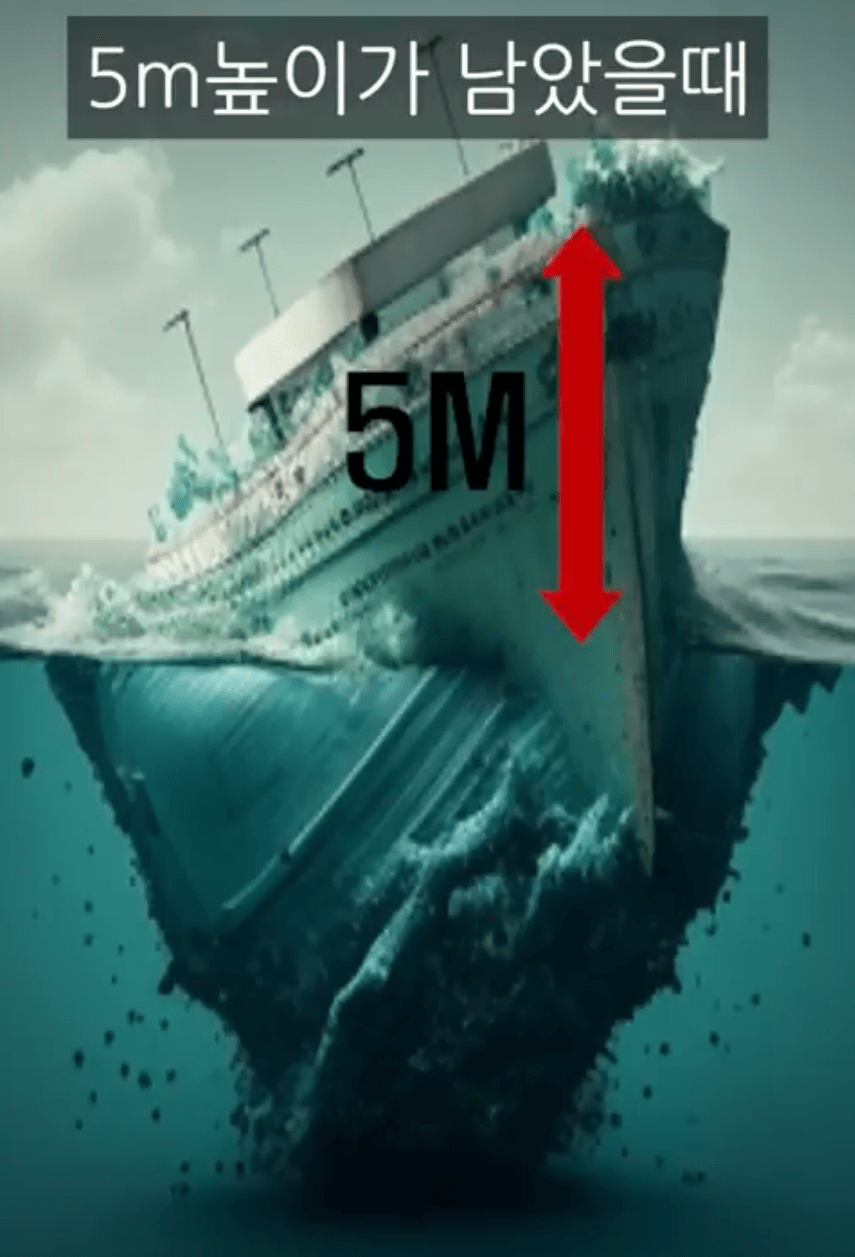그 사이, 구조대가 도착하지 않는다면 5m 높이가 남았을 때 물속으로 뛰어들고 최대한 배에서 멀어지세요.