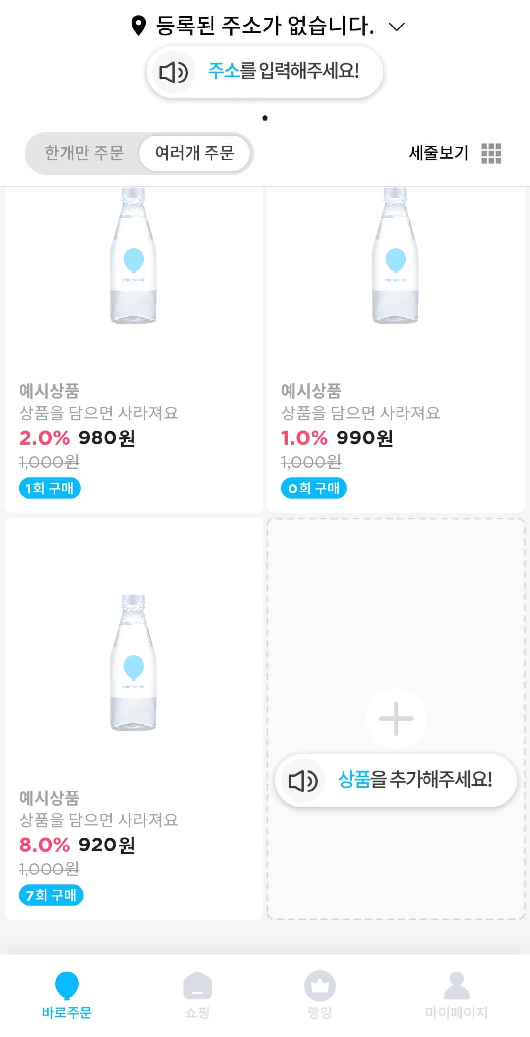 3초만 투자해서 물을 주문하면 문 앞까지 배송해줍니다.