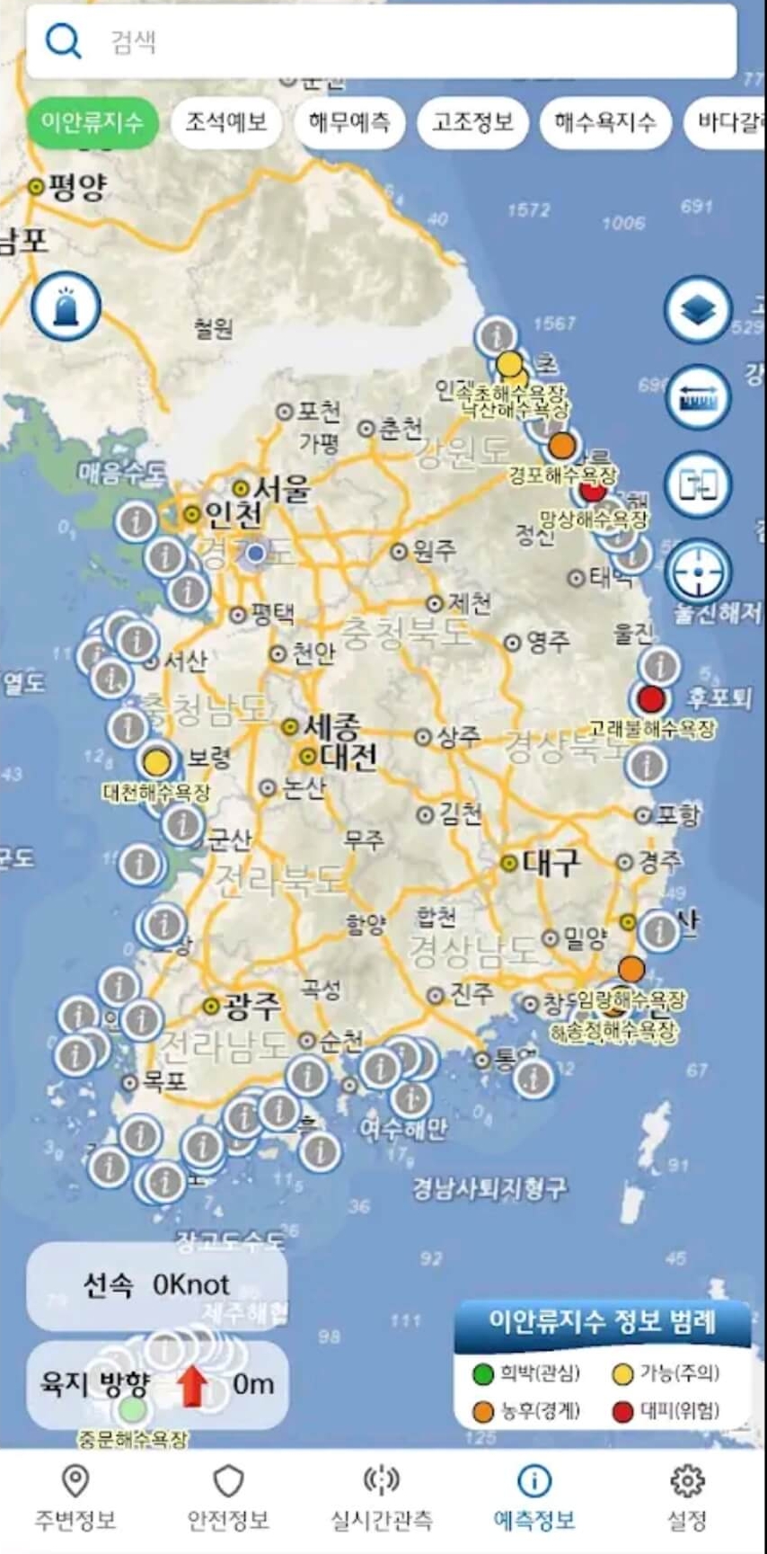 | 먼저 입수 전 이안류 위험지수를 확인하세요.