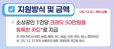 소상공인 1인당 크레딧 50만원을 등록한 카드로 지급